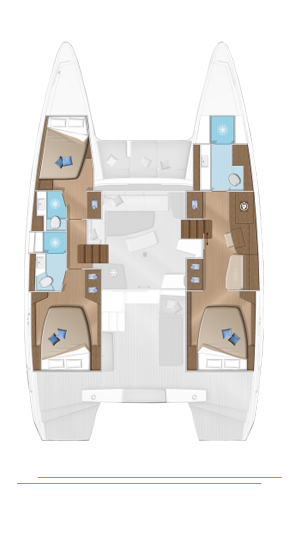 Διατηρώντας παράλληλα μια οικογενειακή ομοιότητα και διατηρώντας τα κύρια χαρακτηριστικά της τελευταίας γενιάς Lagoons, μας δείχνει ένα νέο μονοπάτι: χωρίς βιασύνη εξέλιξη, μια νέα «οργανική» προσέγγιση, σε αναζήτηση αρμονίας μεταξύ του χώρου διαβίωσης και του ανθρώπου. Μια κομψή σιλουέτα, ρέουσες καμπύλες οι οποίες, χάρη στην αξιοσημείωτη επιτάχυνση των γραμμών στα τόξα και στη νέα σχεδίαση προπύργιας, υπογραμμίζουν την ισχυρή και δυναμική φύση αυτού του νέου μοντέλου… Ένας σχεδιασμός VPLP φυσικά, εγγύηση απόδοσης κάτω από το πανί!
